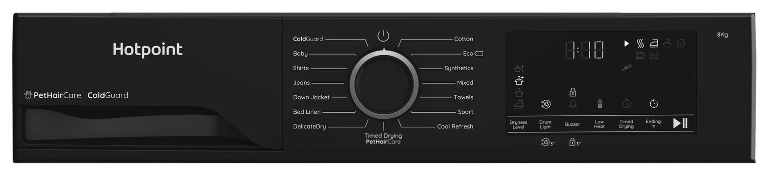 In short, the Hotpoint CHSD82MBBUK 8kg Heat Pump Tumble Dryer in Black is a thoughtfully engineered, pet-friendly, energy-smart addition to any home. It delivers dependable daily drying, protects fabrics, and adapts to your schedule—perfect for modern life where convenience and care go hand in hand.