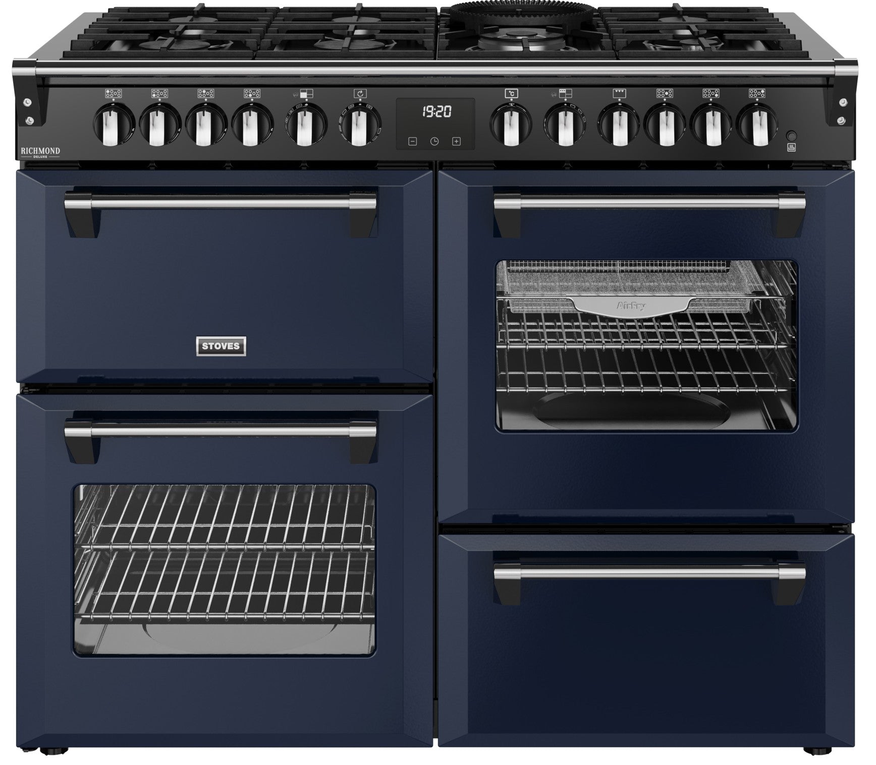 Introducing the Stoves Richmond Deluxe 110DF 110cm Dual Fuel Range Cooker in a stunning Midnight Blue finish. This range cooker is the perfect blend of style and functionality, designed to elevate your culinary experience in the heart of your kitchen.